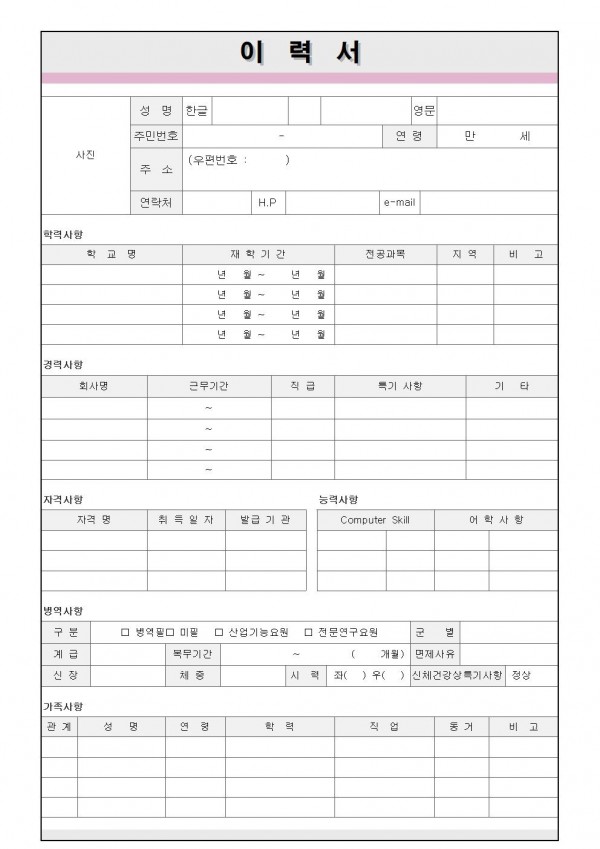◇ 제출서류 : 기본 이력서 (첨부화일 참조)