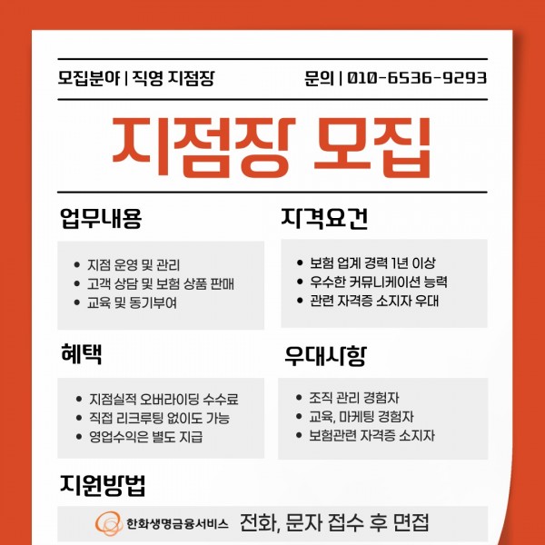[ 경력직 / 신입 보험설계사 , 지점장, 본부장 모...