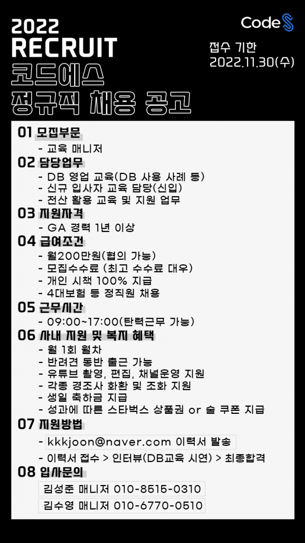 [코드에스 교육 매니저 모집 공고] ● 모집부문 - 교...