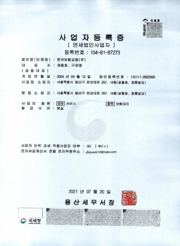 - 본 게시물은 한국보험금융(주) 에서 제공한 자료로 개인정보를 포함하고 있으며 임의유포, 수집, 배포가 금지됩니다.