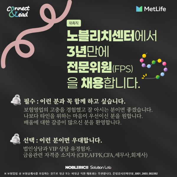 MetLife VIP센터 (노블리치센터) 교육전문위원 모집